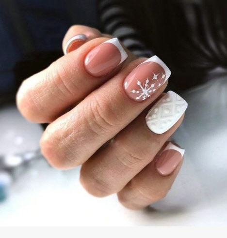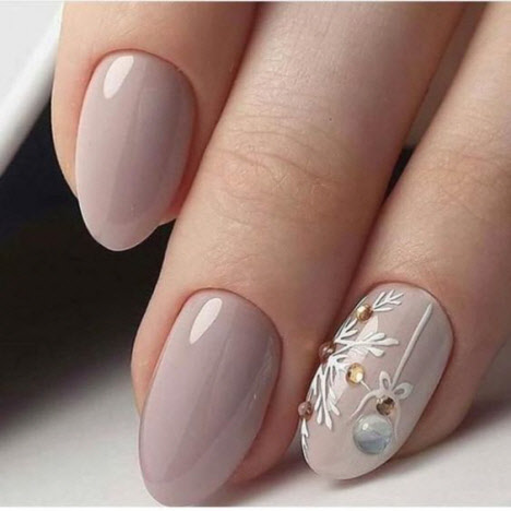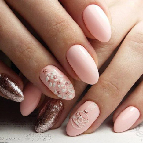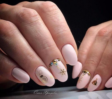 Ruhige, sanfte, gedeckte Nude-Töne werden auch in der Neujahrsmaniküre 2024-2025 im Trend liegen. Aber auch Liebhabern des Minimalismus wird den Meistern empfohlen, zu experimentieren und ihre Nägel eleganter zu gestalten. Fügen Sie zum Beispiel ein paar Glitzer oder Kiesel hinzu, malen Sie eine schöne Schneeflocke oder ein Neujahrsspielzeug, ohne die Eleganz Ihrer Maniküre zu verlieren.