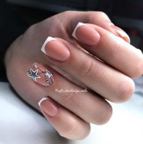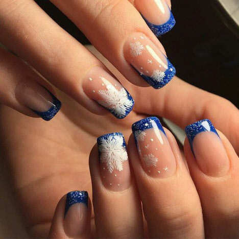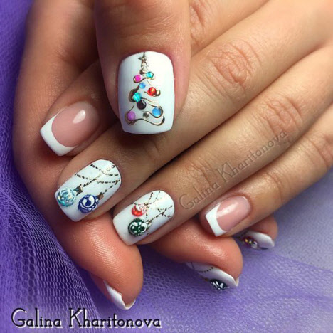 French Manicure kommt nie aus der Mode, nur die Schattierungen der Jackenfarbe und Dekorationselemente ändern sich. Zu den Neujahrsfeiertagen können Sie sicher Schneeflocken, Christbaumschmuck hinzufügen oder sogar einen schönen Weihnachtsbaum mit Kieselsteinen zeichnen.Unten auf dem Foto haben wir für Sie die schönsten und stilvollsten Optionen für die französische Neujahrsmaniküre 2024-2025 ausgewählt.