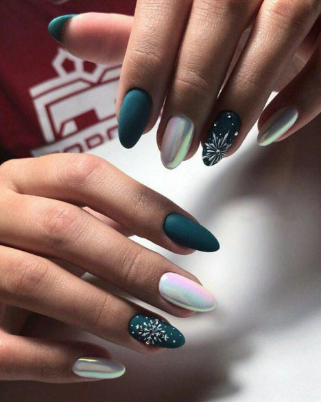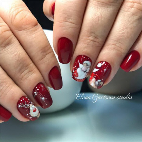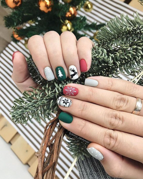 Schaffen Sie Ihre besondere Neujahrsstimmung mit einer Maniküre. Schließlich können Sie auch für kurze Nägel mit verschiedenen Weihnachtselementen eine schöne festliche Maniküre machen. Nach Textur können Sie sicher sowohl eine glänzende als auch eine matte Maniküre wählen. Im Gegensatz zu normalen glänzend glänzenden Nageldesigns sind matte Nägel dezenter, haben eine besondere Textur, wirken ruhig und edel, besonders bei Weihnachtsdeko. Wir zeigen Ihnen, dass Sie für kurze Nägel sehr schöne Maniküre-Designoptionen erstellen können, die kein Mädchen gleichgültig lassen.