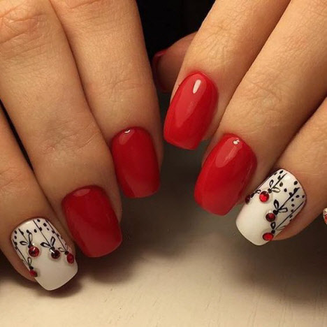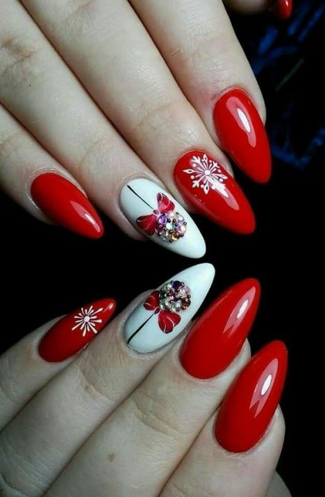 Rot wird mit vielen Schattierungen kombiniert, sowohl hell als auch gedämpft. Besonders schön sieht die rote Maniküre in Kombination mit Weiß, Schwarz, Nude aus und all dies kann in der Neujahrsmaniküre 2024-2025 verwendet werden.