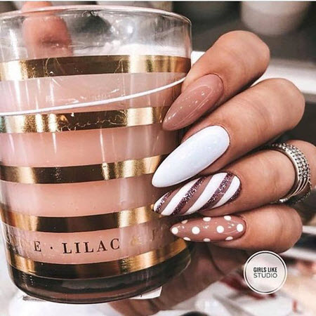 Pastell-Nude-Töne sind gerade im Trend, dies wäre eine großartige Idee für die Maniküre des neuen Jahres 2024.