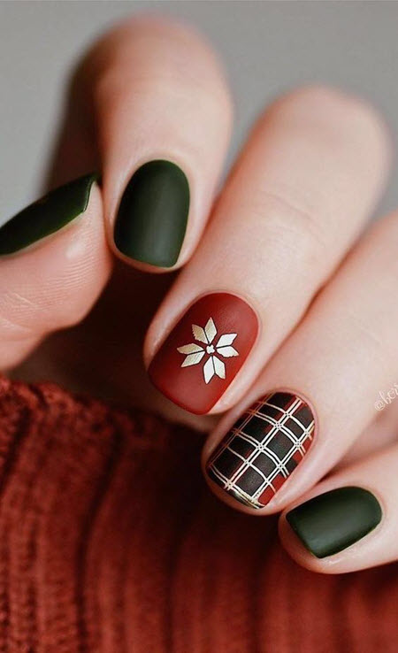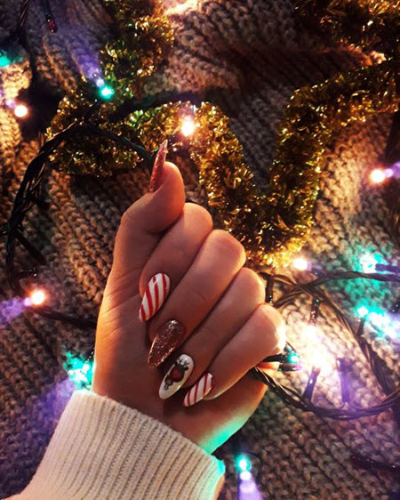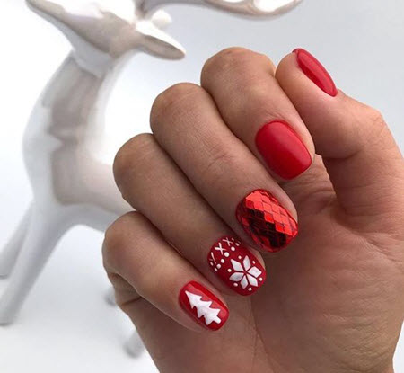 Rot, Weiß, Gold, Grau, Schwarz sind die perfekten Winterfarben für den Silvester-Nagellack 2024. Außerdem sind Schneeflocken, Schneeflocken, Frosty Streaks, Rehe usw. auch eine tolle Idee für Silvester-Nageldesigns.