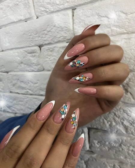French Manicure ist die vielseitigste Maniküre-Option für das neue Jahr 2024, nur einen Schritt von der üblichen Trachtenjacke entfernt. Machen Sie beispielsweise Löcher aus Pailletten mit Stretch oder in ungewöhnlichen Farben, probieren Sie eine zweifarbige French Manicure oder dekorieren Sie sie mit Neujahrselementen (Schneeflocke, Weihnachtskugel, Süßigkeiten).