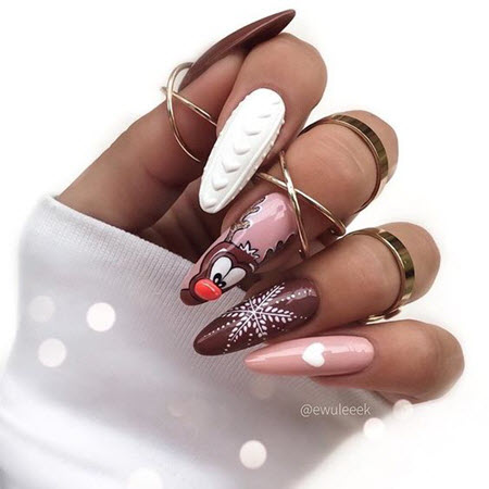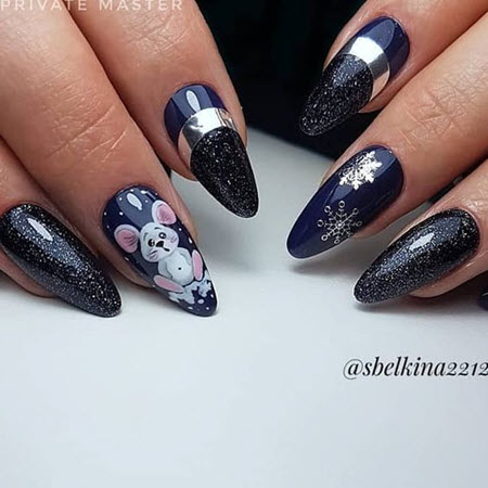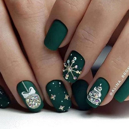 Auf langen Nägeln können Sie eine unrealistisch schöne und stilvolle Neujahrsmaniküre machen. Die modische Neujahrsmaniküre 2024 ist in matt oder glänzend relevant. Lange Nägel können mit weihnachtlichen Zeichnungen verziert werden: schöne Schneeflocken, Christbaumschmuck, ein Zifferblatt mit Pfeil, Weihnachtskränze, ein Schneemann und andere Neujahrsfiguren. Sie können sich auf eines der aufgeführten Themen konzentrieren oder diese miteinander kombinieren.