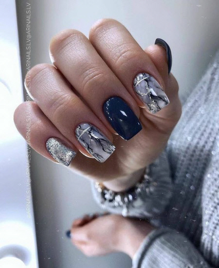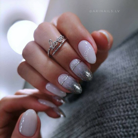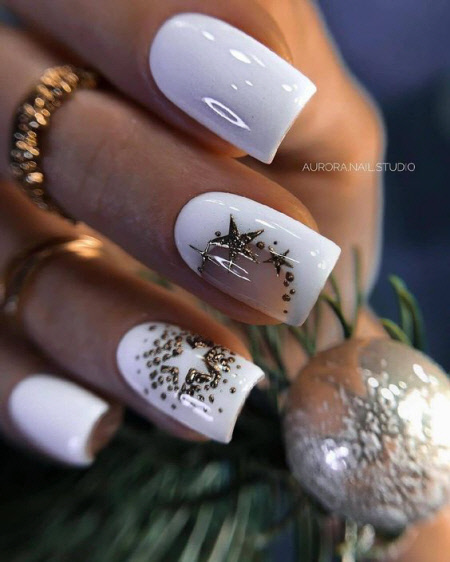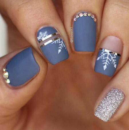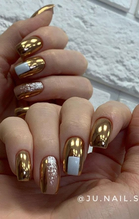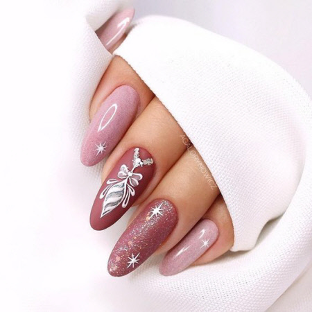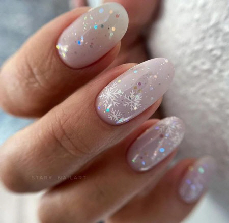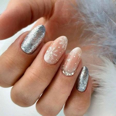 Pailletten sind eine großartige Ergänzung zu einer Neujahrsmaniküre. Sie können jedes Nageldesign sofort aufpeppen und zu allen Lackfarben passen.Sie können Glitzer verwenden, um nur bestimmte Nägel hervorzuheben oder Ihre gesamte Maniküre damit zu dekorieren. Was die Farbe angeht, wählen Sie Farbtöne, die entweder zu Ihrer Winter-Nagelkunst passen oder zu ihr kontrastieren.
