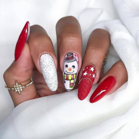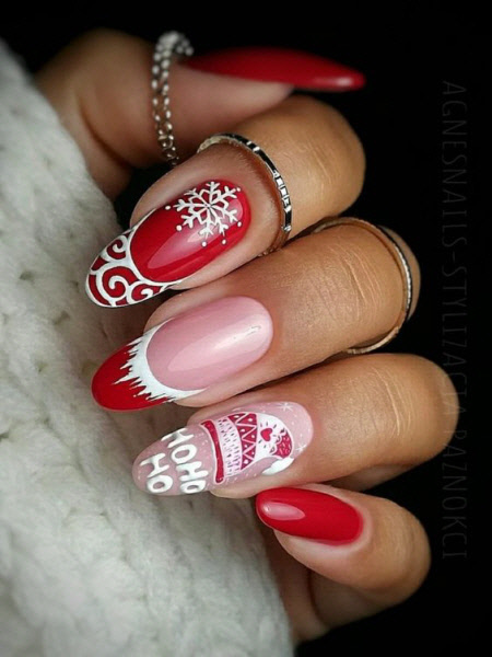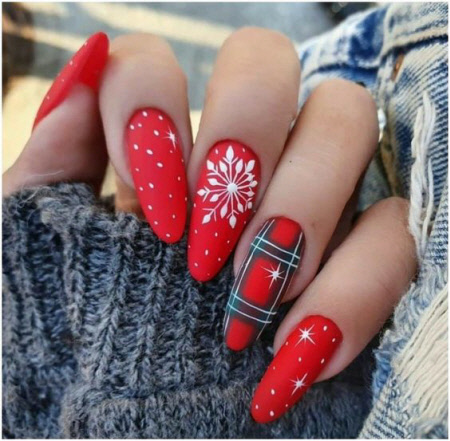 Rote Nägel sind das ganze Jahr über toll, aber an Silvester ist sie eine der schönsten Farben für das Nageldesign: Rote Nägel mit weißen Schneeflocken und rote Nägel mit Weihnachtsmann- oder Hirschmuster sind allesamt Klassiker, die zu jeder Jahreszeit in der Maniküre relevant sind .