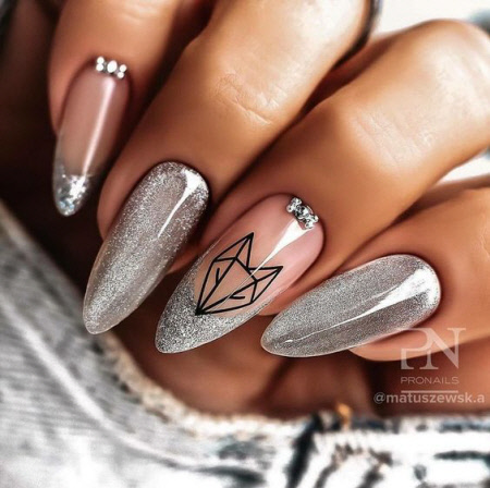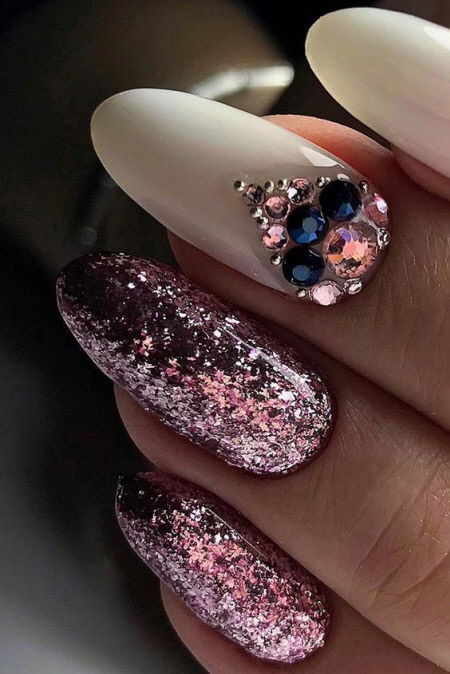 Neujahrsmaniküre mit Glitzern: Foto 2024