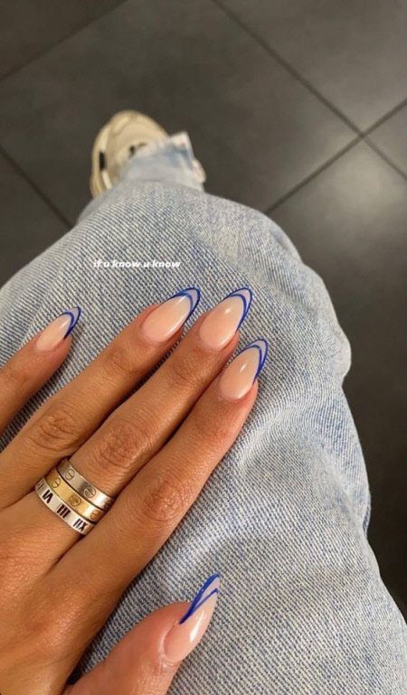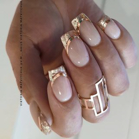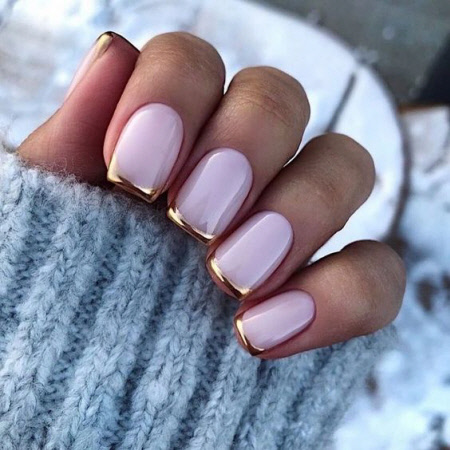 Wenn Sie French Manicure lieben, werden Sie die auf dem Foto unten gezeigten Nageldesigns für das neue Jahr lieben. Wenn Sie sich für eine French Manicure zum Jahreswechsel entscheiden, können Sie auf die traditionelle weiße Spitze verzichten und Pailletten oder trendige Farbtöne der Saison (Blau, Grün, Rot) verwenden, um Ihr französisches Design im Jahr 2024 zu verbessern.
