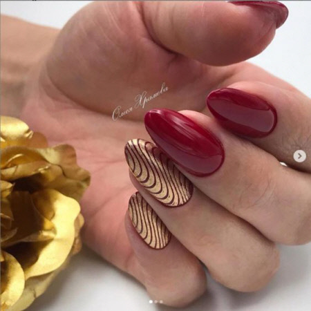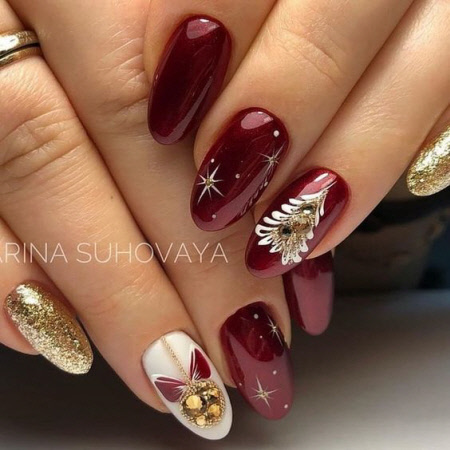 Warme Farben - Rot, Braun, Burgund, Gold - sorgen für ein Gefühl von Neujahrskomfort, daher gehören diese Farben neben Blau, Grün und Schwarz sicherlich zu den Top-Modetrends der Neujahrsmaniküre 2024.