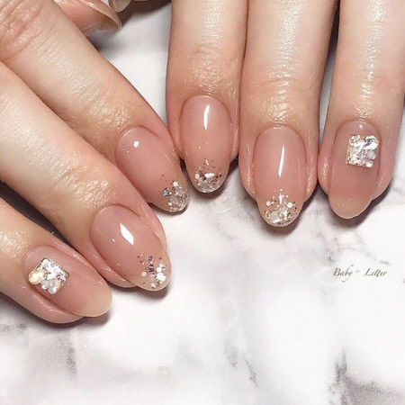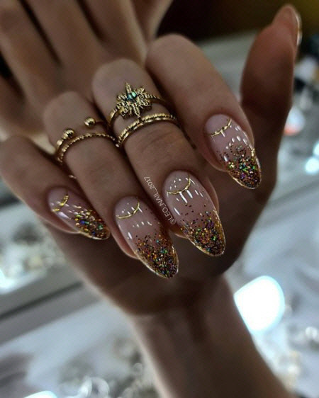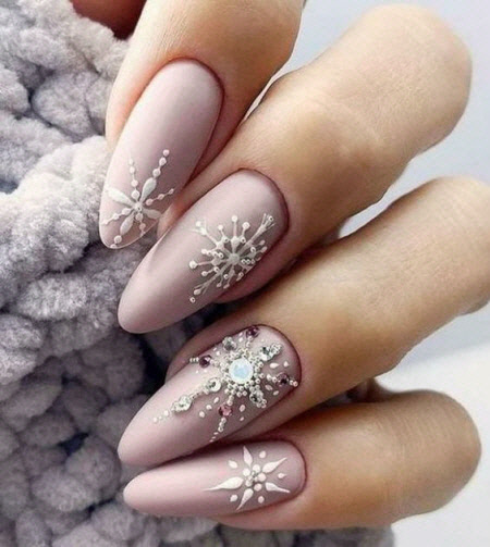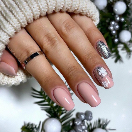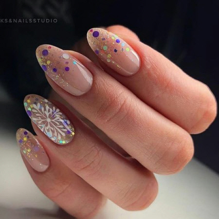 Nicht alle Silvester-Nageldesigns müssen rot oder grün sein, mit einer Nude-Palette von Lacken können Sie 2024 eine atemberaubende Urlaubsmaniküre erhalten. Um einer nackten Maniküre eine festliche Stimmung zu verleihen, können Sie Glitzer oder andere helle Dekorationen hinzufügen. Die Pailletten verleihen dem Look definitiv eine Würze und machen ihn 2024 sehr trendy. Dies ist ein wunderbares Design, das Sie nicht nur in den Ferien tragen können, sondern auch in Ihrem täglichen Leben genießen können, da es wirklich schön und zart aussehen wird.