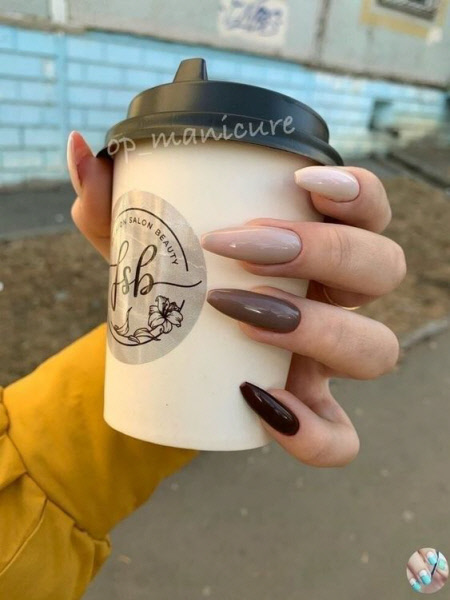 Braun ist ein weiterer Farbton, der der Saison Herbst 2024 würdig ist. Die Herbstmaniküre ist ohne Brauntöne kaum vorstellbar, von Milchschokolade bis dunkel.