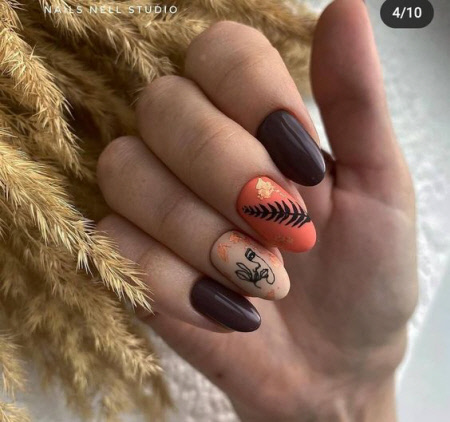 Herbstmaniküre 2024 mit Blattmuster