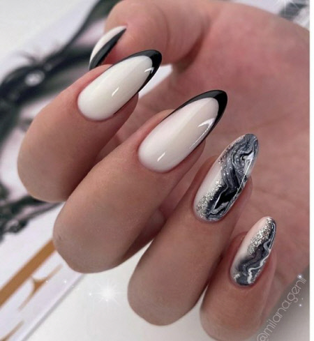 Marmormaniküre für lange Nägel 2024