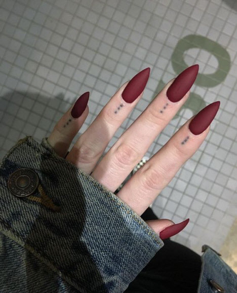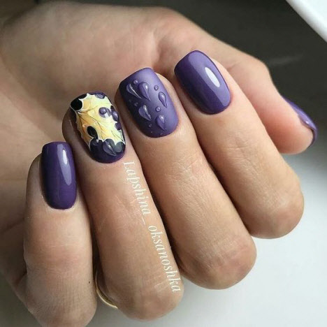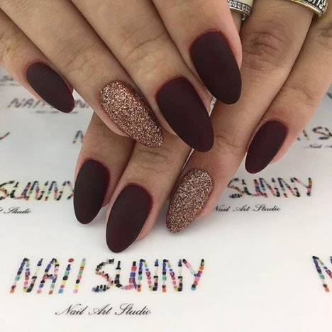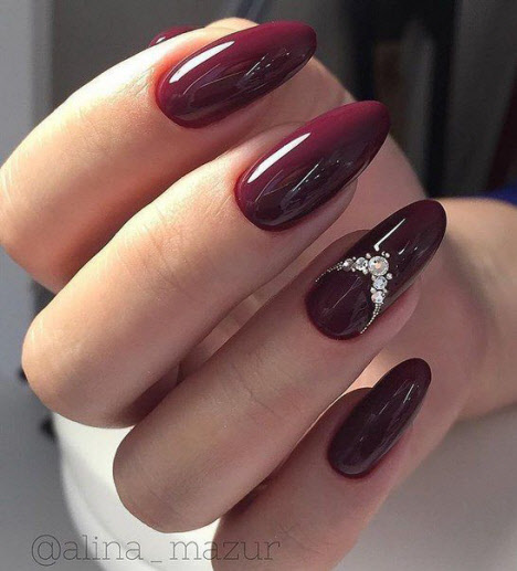 Burgunder, Terrakotta, Granatapfel, Lila, Schokolade, Dunkelblau und ähnliche Farbtöne sind auf dem Höhepunkt der Popularität für die modische Maniküre im Herbst. Dunkle Farbtöne sind perfekt für eine Herbstmaniküre, sie sieht immer raffiniert und luxuriös aus, auch in Form einer monochromatischen Beschichtung oder mit Dekor. Dunkle Maniküre mit glänzendem und mattem Finish liegt im Trend.