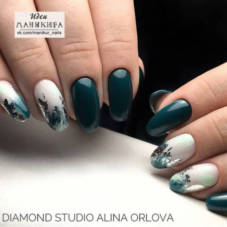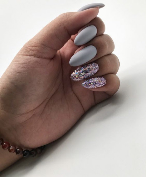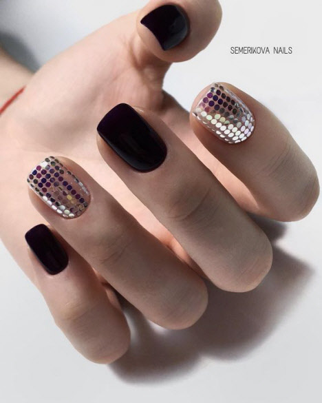 Wann, wenn nicht im Herbst, können Sie unsere Maniküre mit leuchtenden Farben ergänzen, um sich selbst eine festliche Stimmung zu verleihen. Glitzer und Pailletten für die Nägel verleihen der Maniküre einen attraktiven festlichen Look. Nagelservice-Profis unterscheiden zwei Arten von Glitzer für Nägel: Staub Staub (wird) - kleiner und Glitter - größer. Die beliebtesten Glitzer im Nageldesign: Silber, Gold, Holografie. Ein Farbverlauf kann aus kleinem Glitzer auf den Nägeln gemacht werden und große können als Ergänzung zur fertigen Zeichnung zufällig auf der Nagelplatte angeordnet werden.