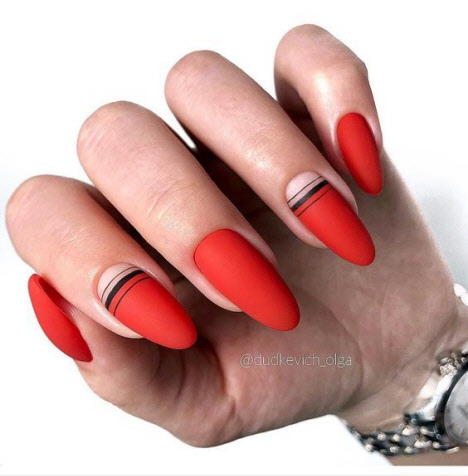 Klassisches Rot und alle seine Variationen bleiben in der Herbstsaison 2024 auf dem Höhepunkt der Popularität in der Nagelindustrie. Die leuchtende, schicke und gleichzeitig dezente rote Maniküre eignet sich für alle Gelegenheiten. Sie können eine einfarbige Beschichtung herstellen oder mit anderen Farben kombinieren, die Kombination von Rot mit Weiß und Rot mit Schwarz sieht besonders gut aus. Sie können auch geometrische Designs in Kombination mit mattrotem Lack machen, dies ist eine sehr modische Kombination.