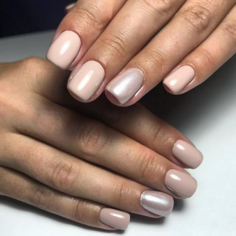 Nude Maniküre sieht gleichzeitig sanft und streng aus, außerdem sieht sie auf kurzen und langen Nägeln toll aus.