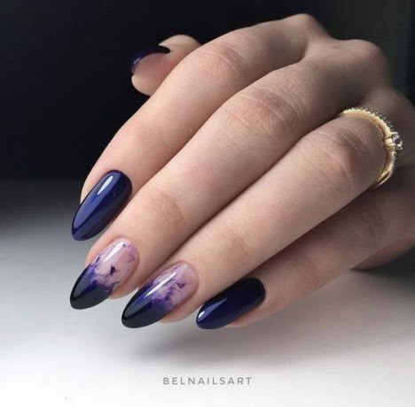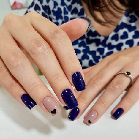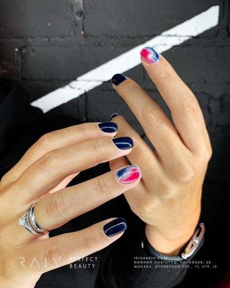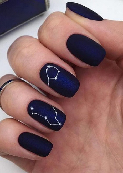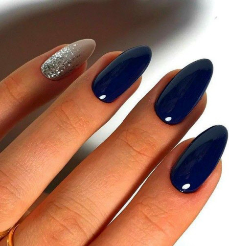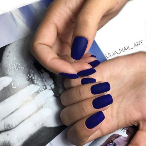 Ein edles gedecktes, dunkles Blau, das unter einem glänzenden Top und unter einem matten Top so schön aussieht. Es sind diese ruhigen und tiefen Farbtöne, die die Liste der beliebtesten im Jahr 2024 machen, damit Ihre Maniküre makellos wird. Blaue Maniküre wird in der Tat zu allen Jahreszeiten angebracht sein, da eine Vielzahl von Tönen in der Natur in Form toller Farbgebungen gezeigt werden, wie uns das Pantone Color Institute mitteilt. Eine blaue Maniküre passt sowohl zu Mädchen mit heller Haut als auch zu einem dunklen Farbtyp, sie ist angemessen.