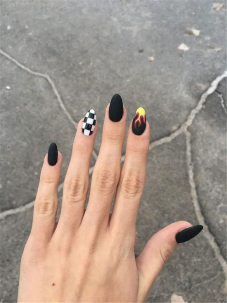 Interessantes Nageldesign in dunklen Farben: Foto 2024