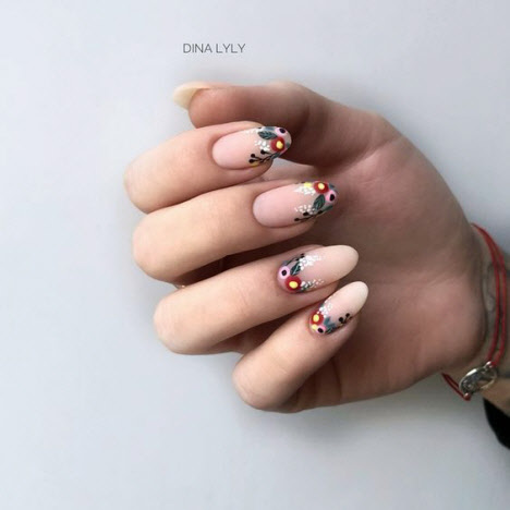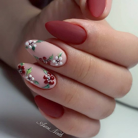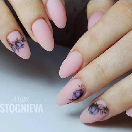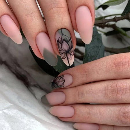 Blumenmuster auf mattem Untergrund: Maniküre der Saison 2024