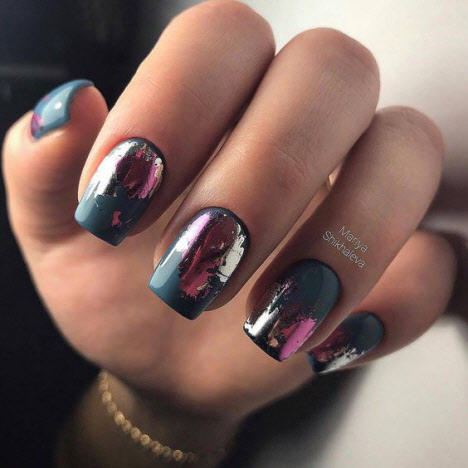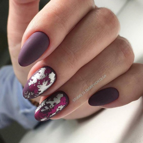 Stilvolle Ideen für matte Maniküre mit Folie 2024, siehe Foto unten: