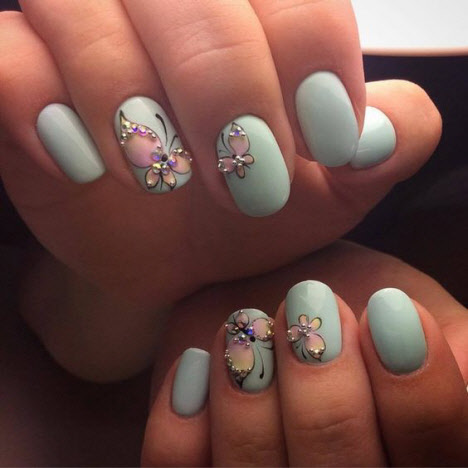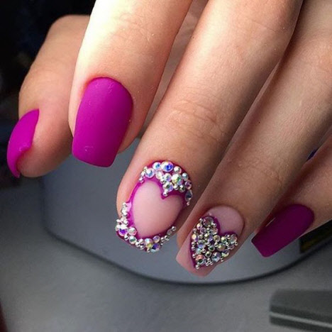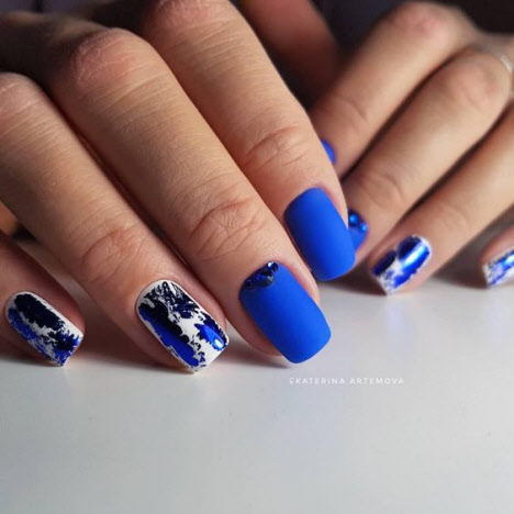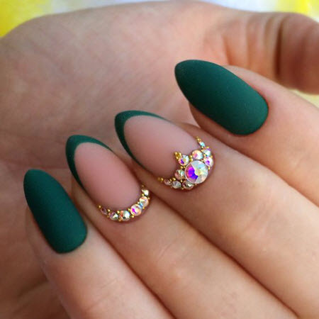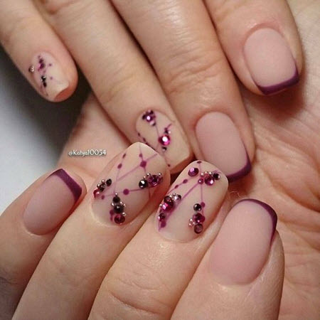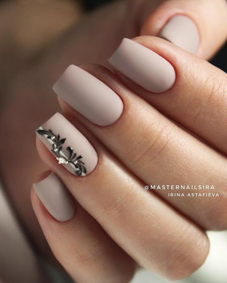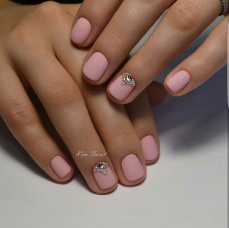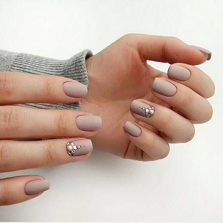 Matte Maniküre mit Steinen unterstreicht Ihren Stil und Ihre Weiblichkeit und verleiht Ihrem Look einen besonderen Chic. Steine und Strasssteine eignen sich eher für eine festliche Maniküre, aber heute passen immer mehr Mädchen diese Art der Maniküre perfekt in den Alltag.