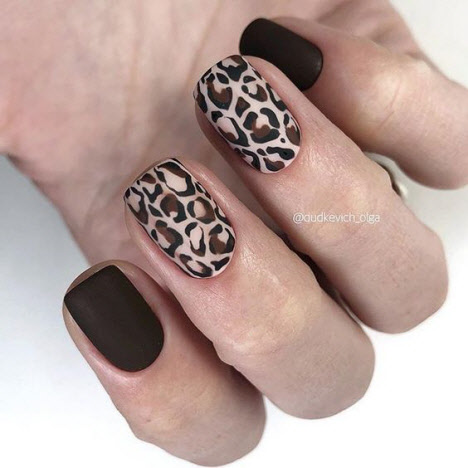 Der Animal-Print in der Maniküre in der Saison 2024 verliert nicht an Relevanz, im Gegenteil, dieser modische Print ist heute überall zu finden: in Kleidung, Accessoires, Schuhen und sogar Brillen. Ein Animal-Print kann mit jedem Stil kombiniert werden, auch mit einem Business-Stil, wählen Sie nur geeignete Farbtöne und führen Sie eine matte Maniküre durch, um die Schönheit des Drucks hervorzuheben. Sie können die gesamte Palette an Nude-Tönen und einigen dunklen sicher verwenden: Rot, Blau, Schwarz, Braun, Lila.