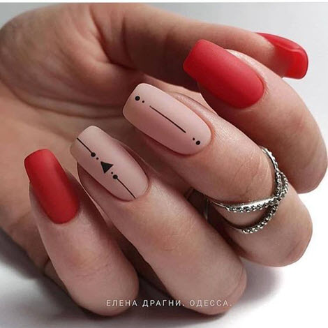 Matte Maniküre ist zu jeder Jahreszeit angebracht. Entscheiden Sie sich im Frühling und Sommer für warme, hellere Lacktöne und hellere Farben. Und wählen Sie in der Herbst-Winter-Periode satte dunkle Farbtöne, die in einem matten Finish besonders beeindruckend wirken.