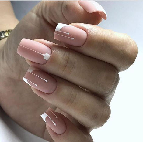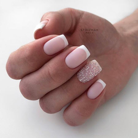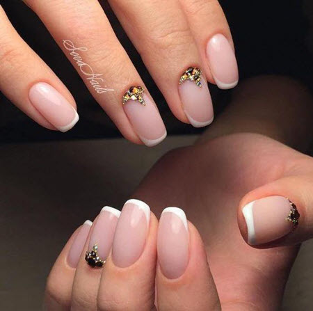 Matte French Manicure passt gut zu Steinen und Glitzern und unterstreicht die Schönheit der Jacke.