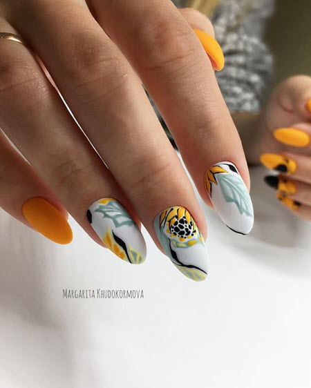 Willst du eine super stylische Maniküre? Dann wählen Sie eine matte Maniküre mit Folie für die Saison 2024. Es gibt verschiedene Folienarten, dank denen Sie eine Vielzahl von Maniküre-Designideen verwirklichen können. Sie können mehrere Ringelblumen mit Folie dekorieren und so ein Design betonen, das in dunklen und hellen Farben sehr schön aussieht.