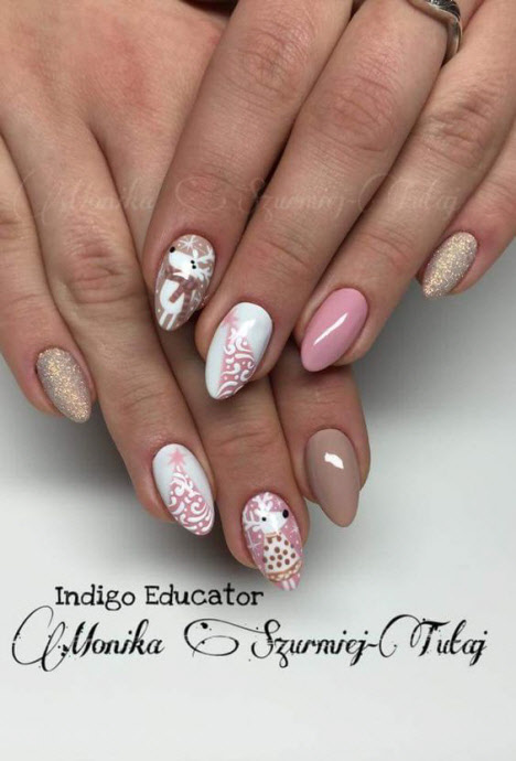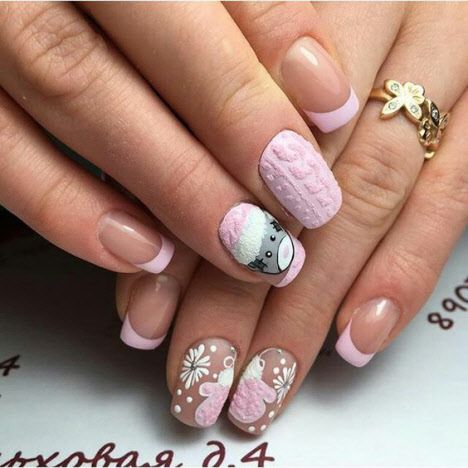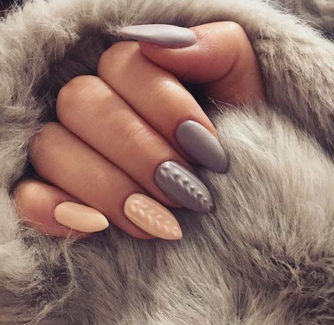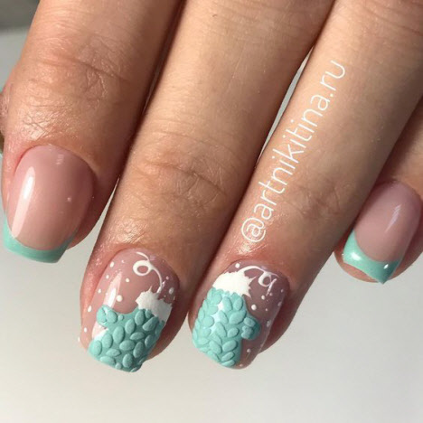 Winterstrickmaniküre wird in dieser Saison relevant sein, insbesondere in Kombination mit Pastellfarben. Und natürlich thematische Winterdrucke, denn jeder von uns macht mindestens einmal in der Wintersaison, insbesondere am Vorabend der Feiertage, eine solche Maniküre.