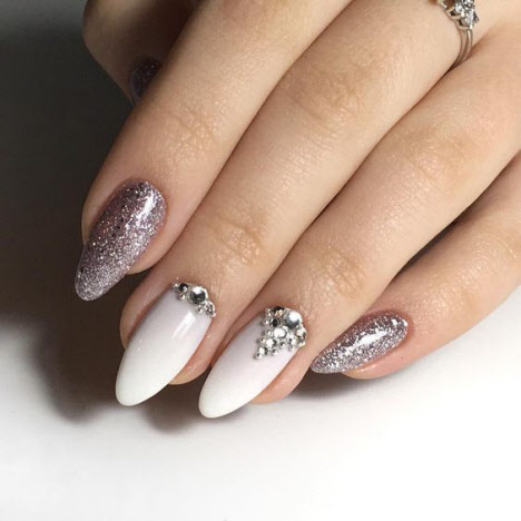 Das Dekorieren der Nagelplatte mit Glitzer (Glitter) hat viele verschiedene Variationen und Ausführungstechniken, mit denen Sie die modischste und modernste Nagelkunst herstellen können. Die modische Glitzer-Maniküre 2024-2025 wird auf kurzen und langen Nägeln jeder Form gut aussehen, sogar mit einer klassischen French-Maniküre. Und wie schön matte Maniküre mit Glitzer kombiniert wird, das muss man gesehen haben, deshalb bieten wir Ihnen ein Foto zur Inspiration.