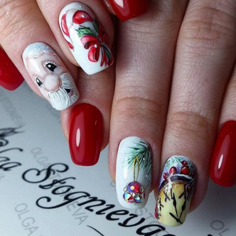 An den Neujahrsfeiertagen möchte ich besonders etwas Ungewöhnliches, Festliches und Fröhliches. Schneeflocken auf den Nägeln, stylische Fäustlinge, ein Weihnachtsbaum oder ein niedlicher Schneemann sorgen für eine festliche Stimmung.