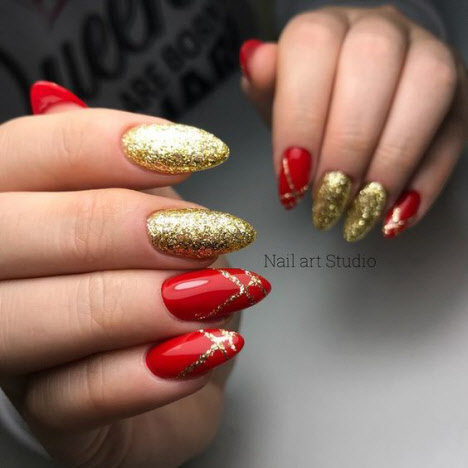 Ich liebe rote Maniküre wirklich, es ist gut, dass ich gute Möglichkeiten gefunden habe, die gemacht werden können. Es gibt schöne Optionen, aber mit dem Neujahrsthema ist dies nicht meins. Allerdings gibt es keine Genossen für Geschmack und Farbe.