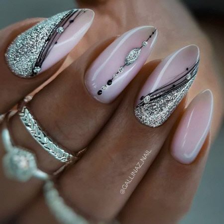 Der einfachste Weg, eine schöne Wintermaniküre für lange Nägel zu machen, besteht darin, Glitzer hinzuzufügen. Nagelglitter können verschiedene Arten (trocken, flüssig), Formen und Farben haben, was sie zum perfekten Nageldekor macht. Kombinieren Sie für die Wintersaison 2024-2025 Glitzer mit trendigen Lacktönen (weiß, rot, grau, pink, lila) und genießen Sie eine trendige Maniküre.
