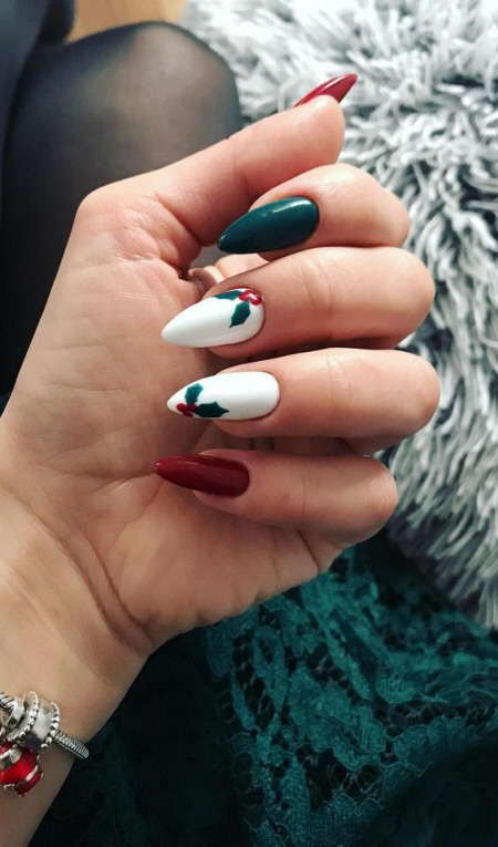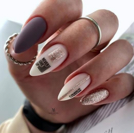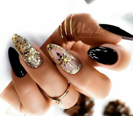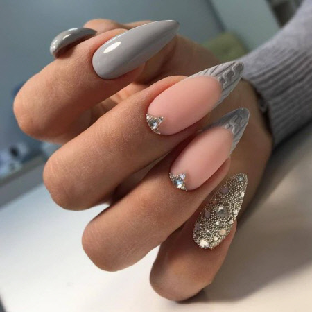 Modische Wintermaniküre 2024-2025 für lange mandelförmige und ovale Nägel