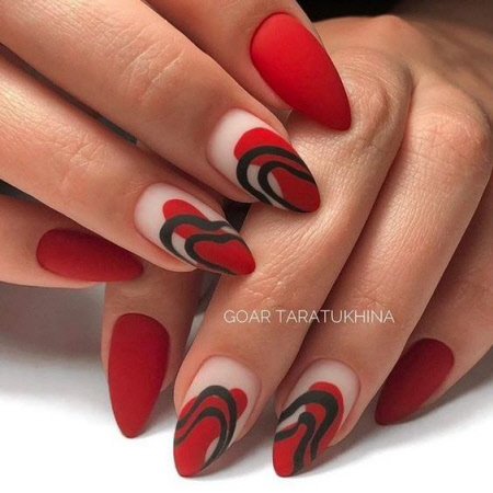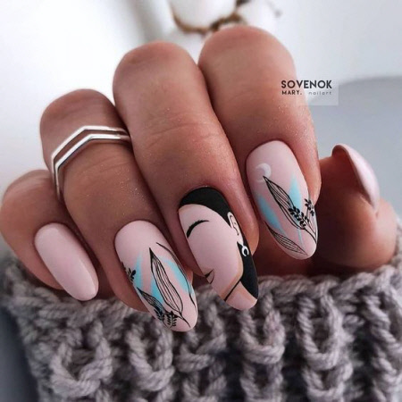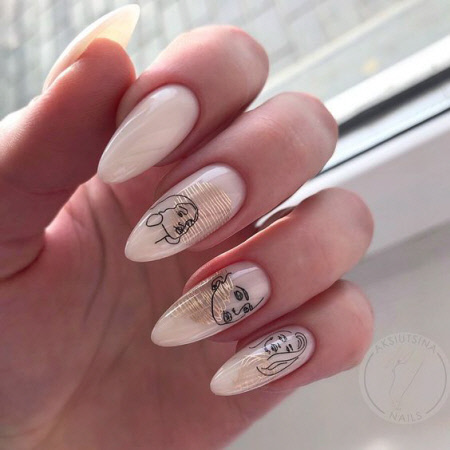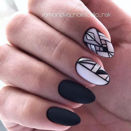 Abstraktionsdesign sind die charakteristischen Locken, Punkte, Linien, abstrakten Gesichter und Farben, die der Maniküre ein atemberaubendes Aussehen verleihen. Und die richtige Kleidung wird in diesem Winter nur das atemberaubende Bild der Maniküre in der Kraft der Abstraktion betonen.