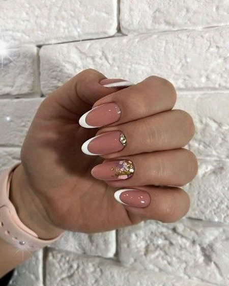 Wenn Sie ein Fan von Pastelltönen sind, sollten Sie sich mit Beginn des Winters für einen blassrosa, beige oder karamellfarbenen Lack entscheiden. Und um im Winter eine festliche Stimmung zu erzeugen, können Sie 2024-2025 immer eine zarte Maniküre mit Glitzern, Folie oder Kamifubuki ergänzen.