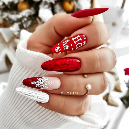 Lange, mandelförmige und ovale Nägel eignen sich am besten für gemusterte Maniküre. Von funkelnden Schneeflocken in strahlendem Weiß bis hin zu dezenten matten Designs, von entzückenden Hirschen bis hin zu luxuriösen Blumen oder schlichten minimalistischen Designs ist dies alles in der Wintersaison 2024-2025 zu sehen. Eine gemusterte Maniküre wird Sie diesen Winter sicher aufheitern!