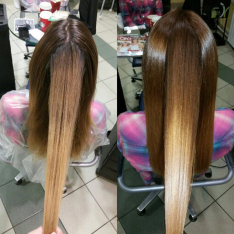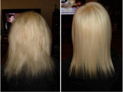 - Als eigenständige Behandlung für geschädigtes Haar. Das Verfahren wird in einem Kurs durchgeführt, dessen Dauer vom Meister basierend auf dem Zustand der Haare bestimmt wird.