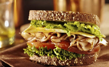 Frühstück: Sandwich und Kaffee mit Milch oder Kräutertee mit Honig und Zitrone.