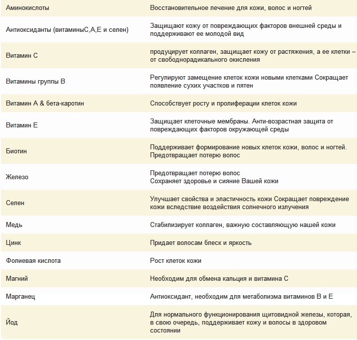 Vitamin B - Biotin - in der Zusammensetzung erhöht die Elastizität der Haut. Es verbessert die Festigkeit, Dichte und Dicke der Nägel und beugt Haarausfall vor. Vitamine mit antioxidativen Eigenschaften beschleunigen den Ersatz alter Zellen durch neue sowie die Kollagensynthese und reduzieren so den Ausdruck und tiefe Falten. Vitaminkomponenten helfen, trockenes Haar zu verhindern und vor vorzeitiger Hautalterung und den schädlichen Auswirkungen von UV-Strahlen und verschmutzter Umgebung zu schützen. Eine natürliche Mischung aus Carotinoiden bietet starke antioxidative Wirkung und schützt so die Haut.