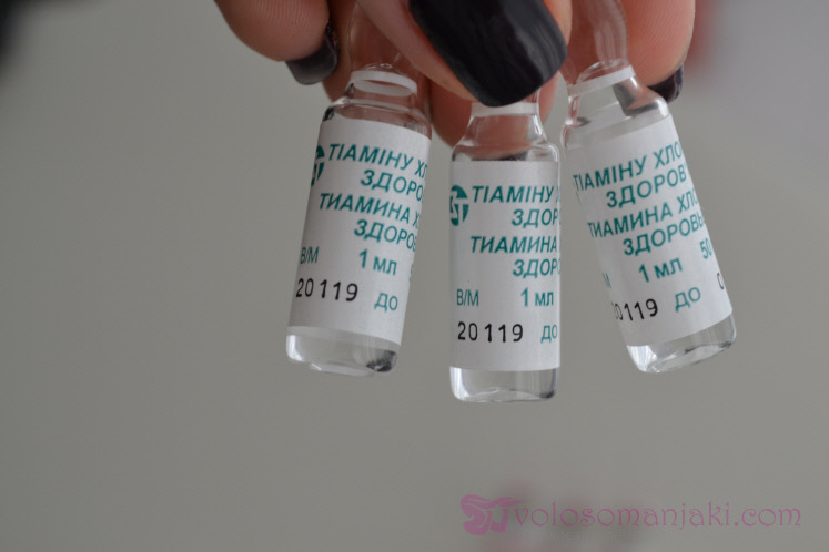 Wenn Sie Vitamin B1 intern einnehmen: die Norm von Vitamin B1 bei Erwachsenen ist auf Alter und Stress zurückzuführen - von 1 bis 2,5 mg pro Tag. Vitamin B1 stellt nicht nur die Haarwurzeln wieder her, sondern verbessert auch die Qualität der Haarstruktur, macht die Locken hydratisierter, elastischer und widerstandsfähiger gegen äußere negative Faktoren.