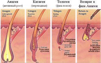 Das Hauptunterscheidungsmerkmal des diffusen Haarausfalls gegenüber anderen Alopezie-Arten besteht darin, dass das Haar gleichmäßig über den gesamten Kopf ausfällt. Das Haar selbst bleibt vollkommen gesund, fällt aber gleichzeitig aus und seine natürliche Erholung wird verlangsamt. Diffuse Alopezie ist eine Folge eines allgemeinen Ungleichgewichts im Körper. Um alles in die Regale zu stellen, beginnen wir mit dem Lebenszyklus der Haare. Jedes Haar durchläuft seinen eigenen Lebenszyklus - drei Phasen von Anagen, Katagen, Telogen.