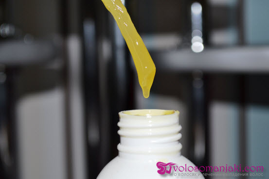 Komposition: kosmetisches Lanolin, Raps-, Rizinus-, Olivenöl, Silatran, Silizium und Zink, Tannen- und Lavendelöl, Vitamine A, D, E.Die Zusammensetzung ist sehr, sehr vertrauenswürdig, es ist nicht beängstigend, sie auf die Haarwurzeln aufzutragen und über Nacht zu lassen.