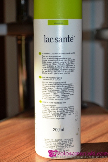 Hersteller - LLC "Lac Sant", Ukraine, Kiew im Rahmen einer Lizenzvereinbarung mit Lac Sante ApS, Königreich Dänemark. Die Konsistenz des Balsams ist wie Wasser, mit einem leichten Aroma. Der Balsam ist in einer 200 ml Plastikflasche.
